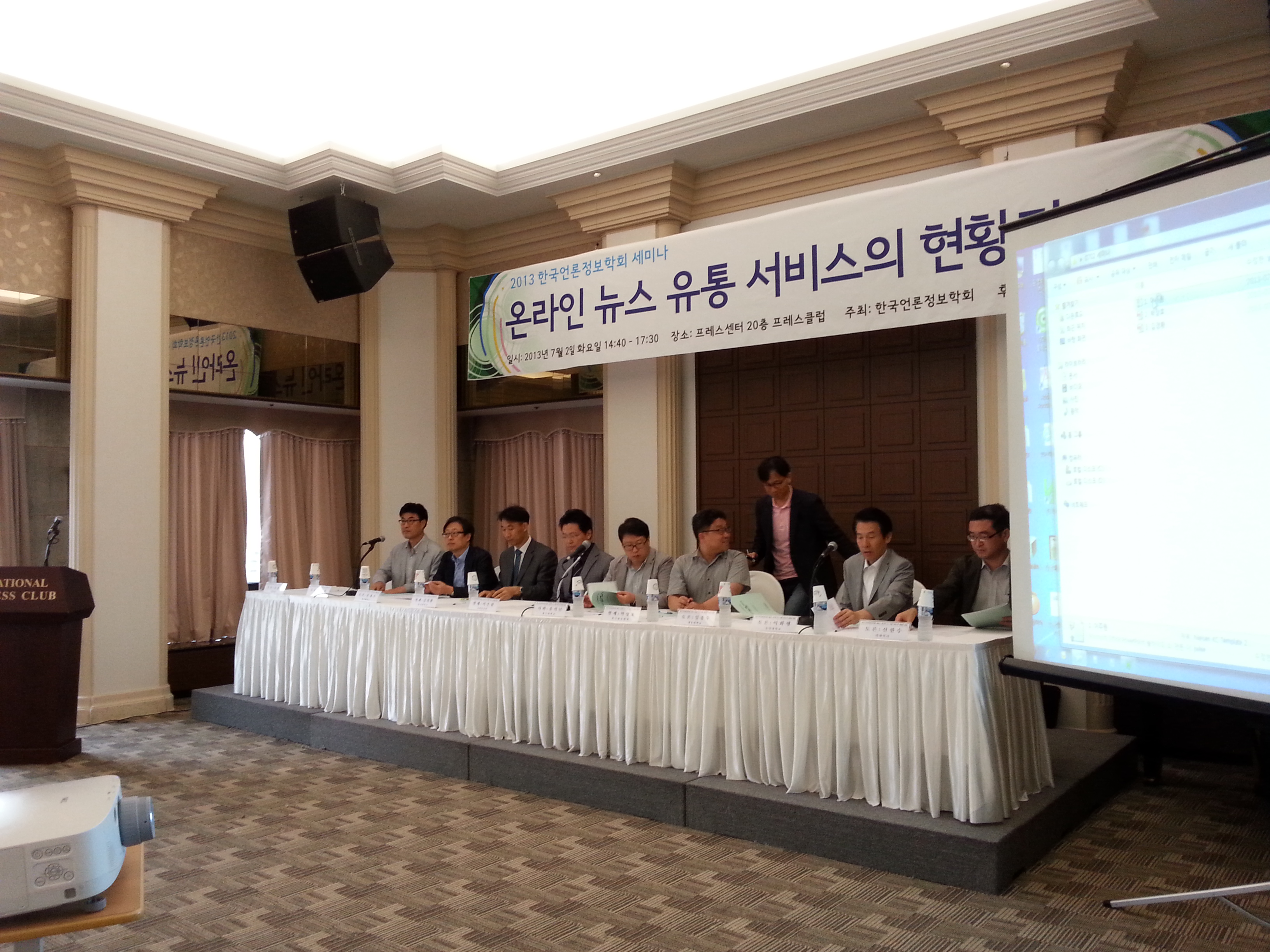 ‘온라인 뉴스 유통 서비스의 현황과 쟁점’ 세미나 일시: 2013년 7월 2일 화요일 14:40 - 17:30 장소: 프레스센터 20층 프레스클럽 주최: 한국언론정보학회 후원: 한국언론진흥재단