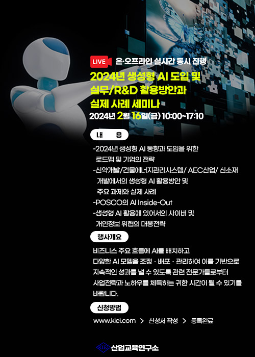 1. 행사명 : 2024년 생성형 AI 도입 및 실무/R&D 활용방안과 실제 사례 세미나