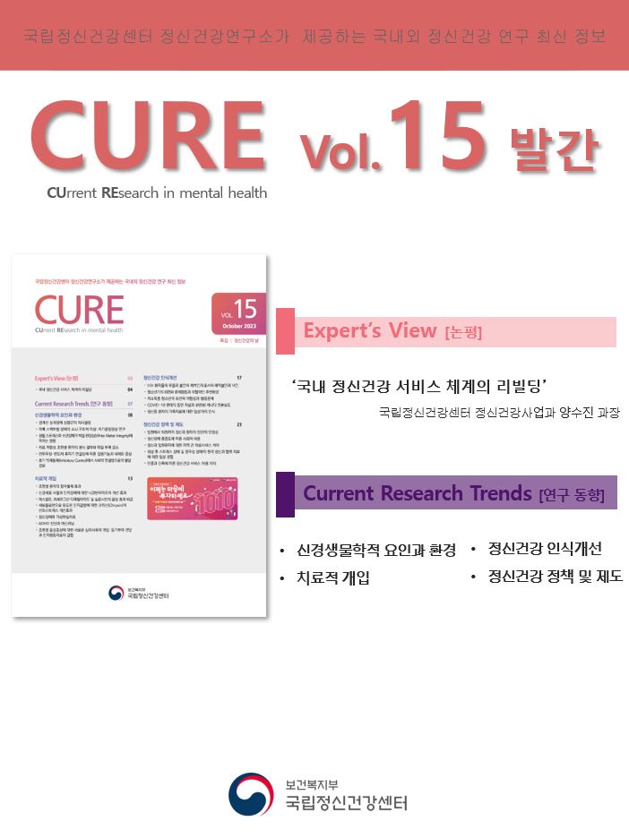 CURE (CUrrent REsearch in mental health) Vol.15 정신건강의 날 특집호가 발간되었습니다.