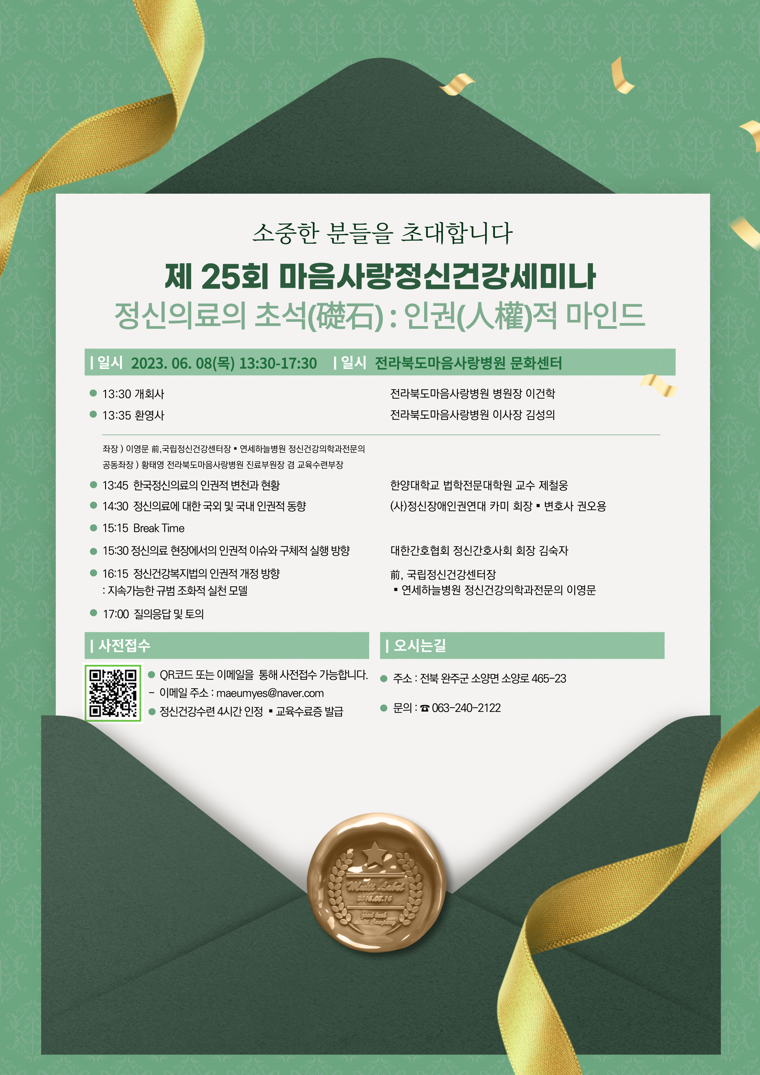 3) 장소 : 전라북도마음사랑병원 문화센터 (1층 대강당)