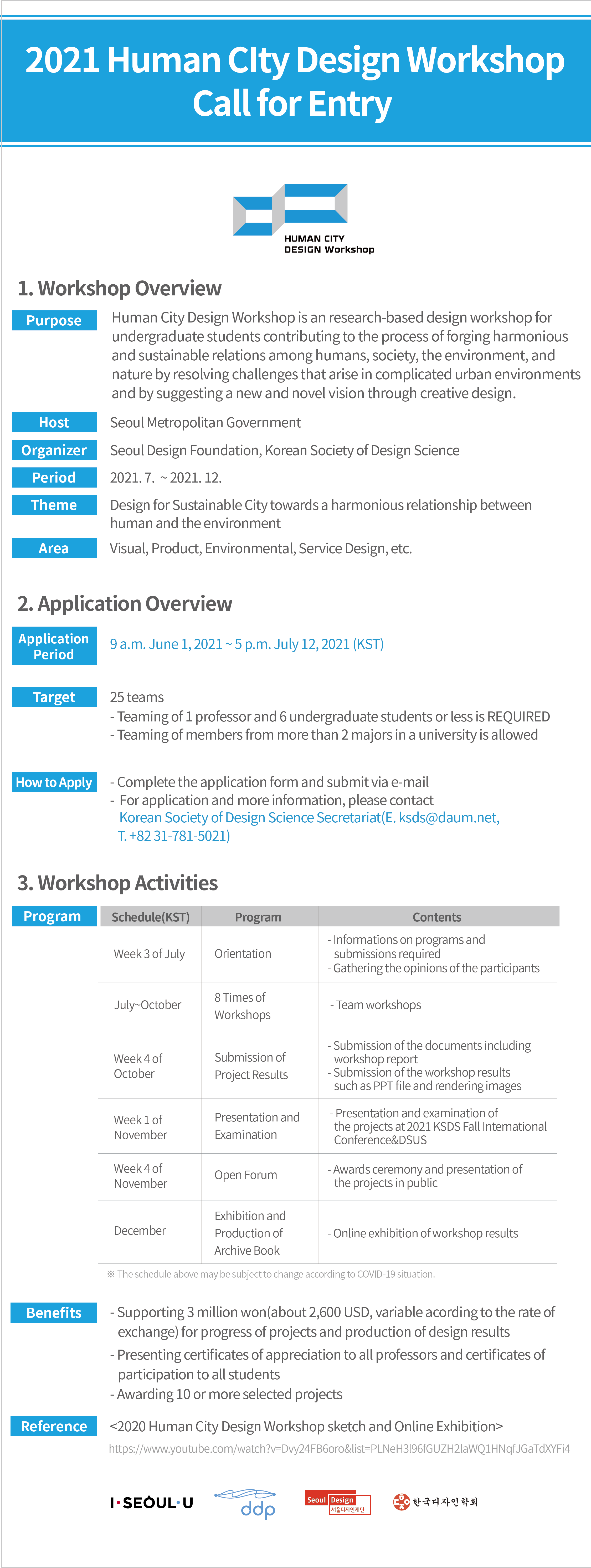2021 휴먼시티디자인대학생워크숍 참가팀 모집 기간 연장 안내