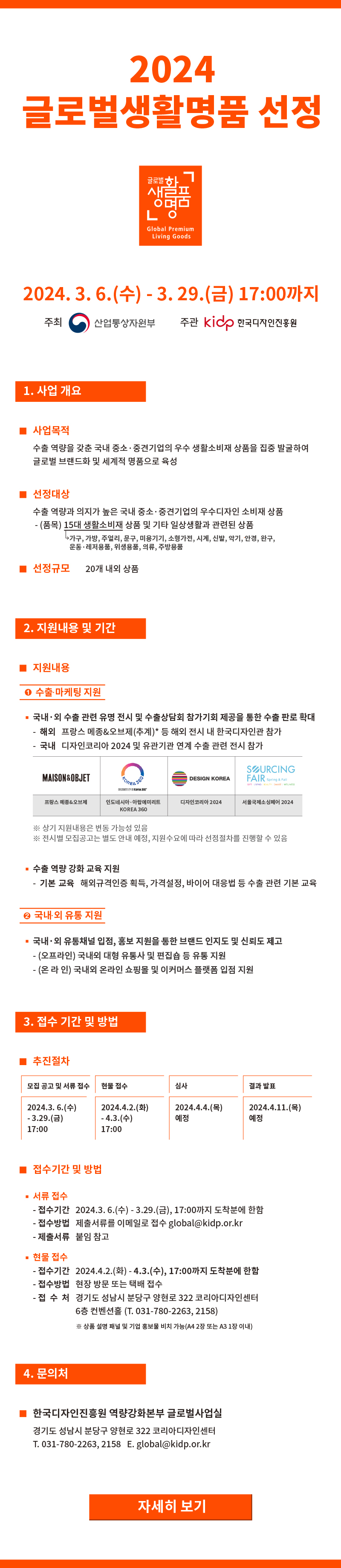 [한국디자인진흥원] 2024년 글로벌생활명품 선정 공고