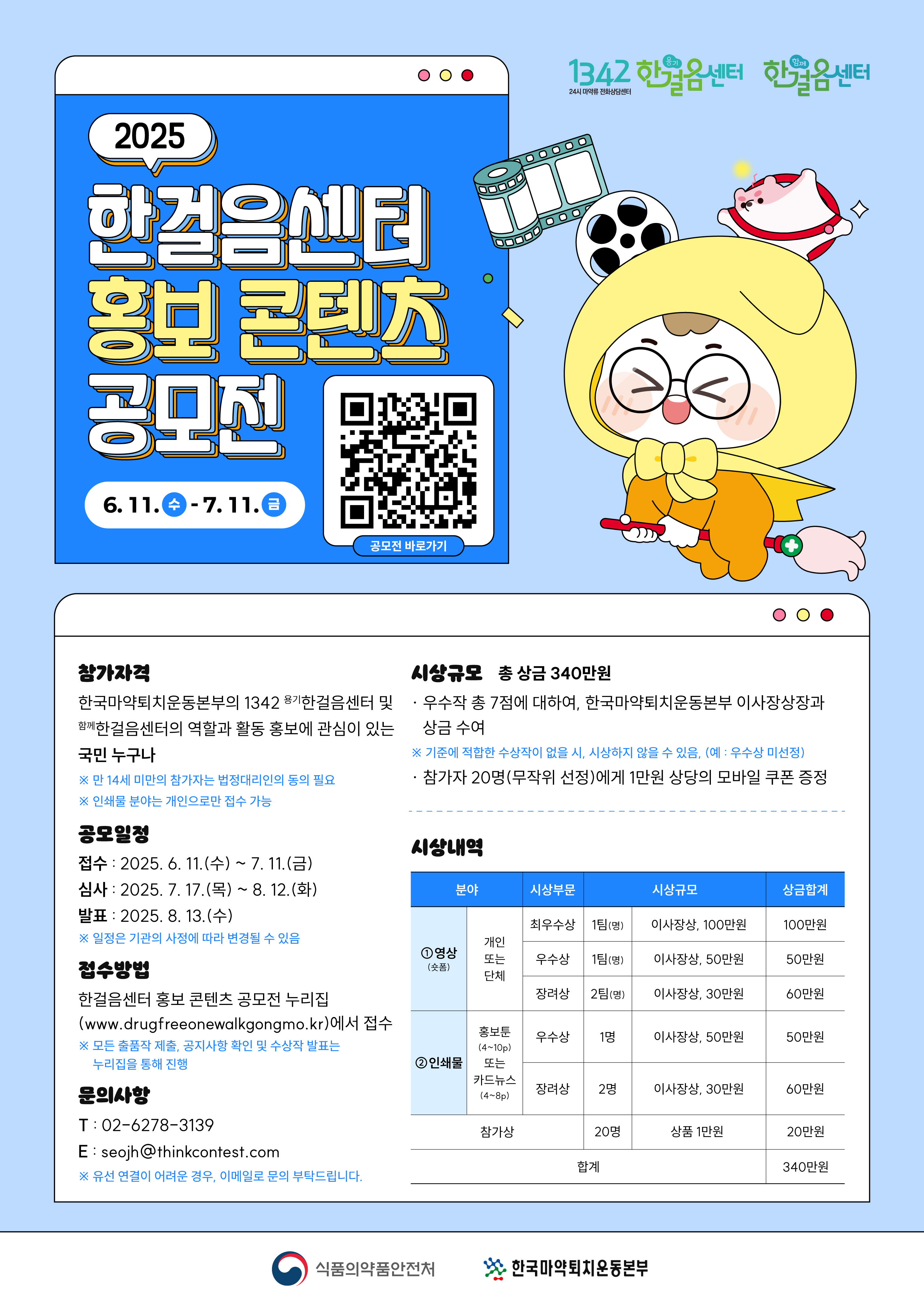 [한국마약퇴치운동본부] 2025년 한걸음센터 홍보 콘텐츠 공모전 안내