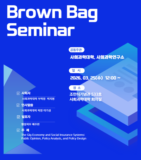 2026학년도 제 1차  Brown Bag seminar를 개최하오니 많은 참여바랍니다.