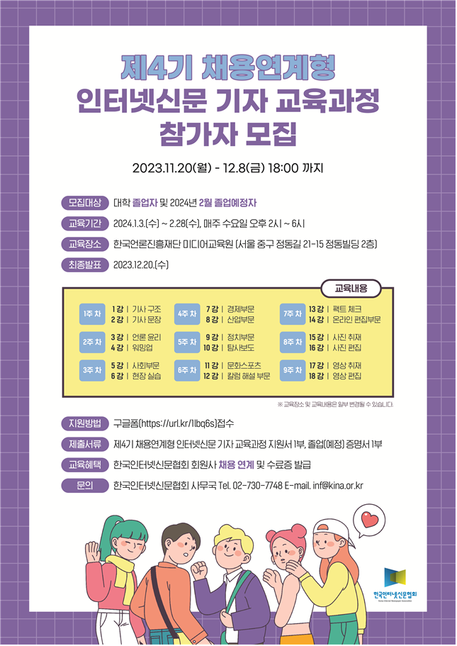 한국인터넷신문협회 <제4기 채용연계형 인터넷신문 기자 교육과정> 참가자 모집 안내