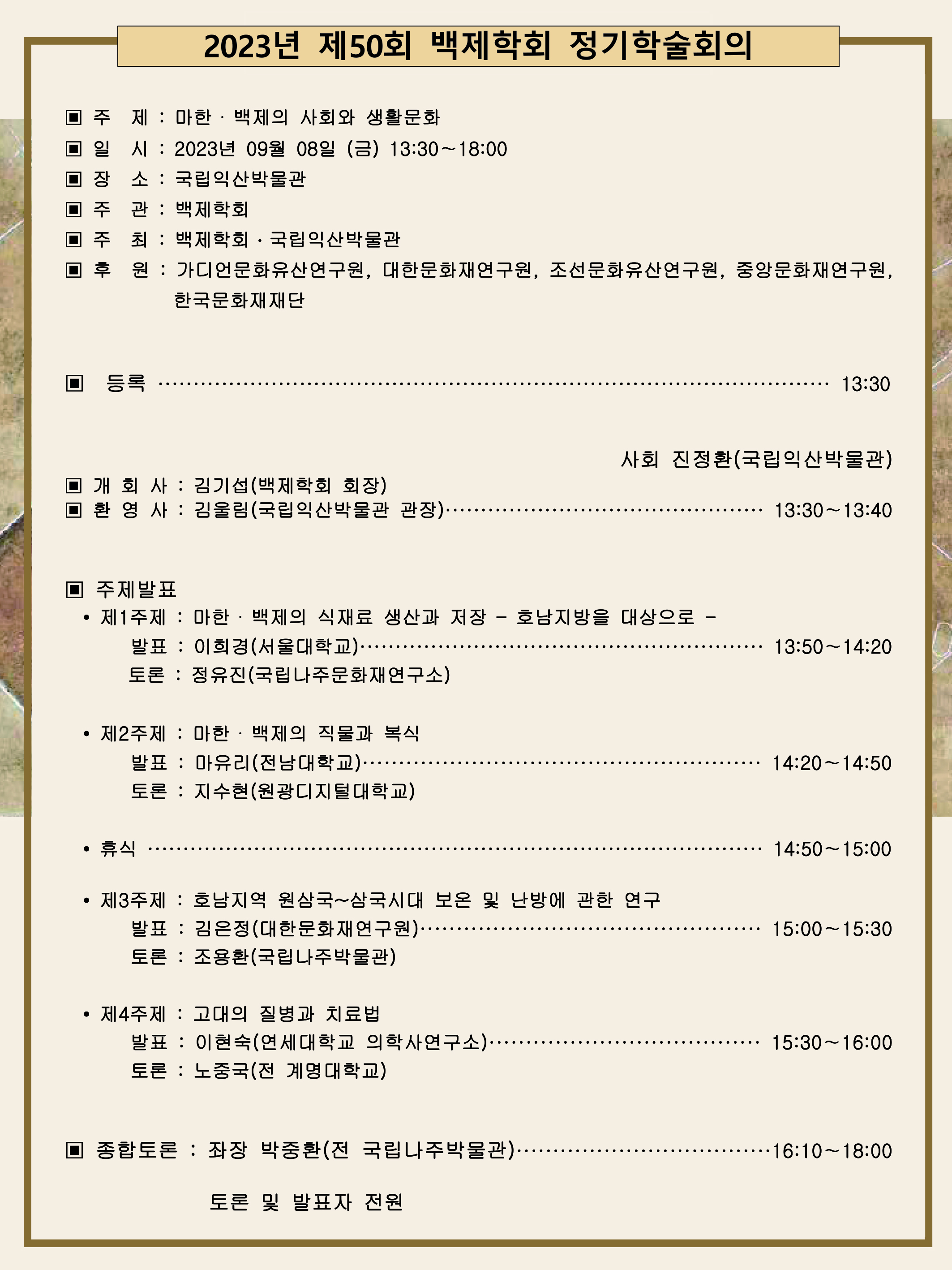 백제학회 제50회 정기(추계)학술회의 안내