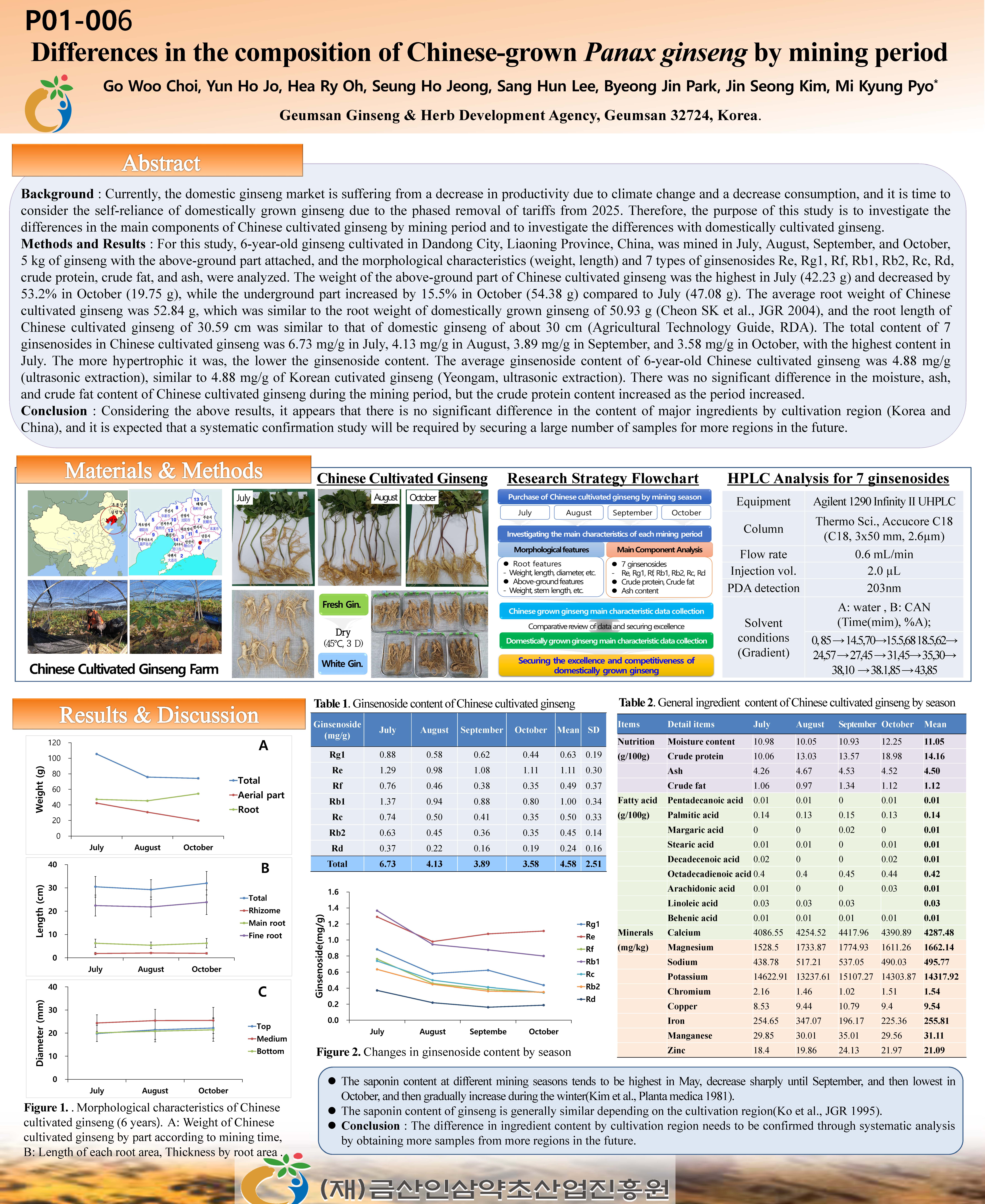 [P01-006] 중국 재배 고려인삼의 채굴 시기별 주요 성분 차이