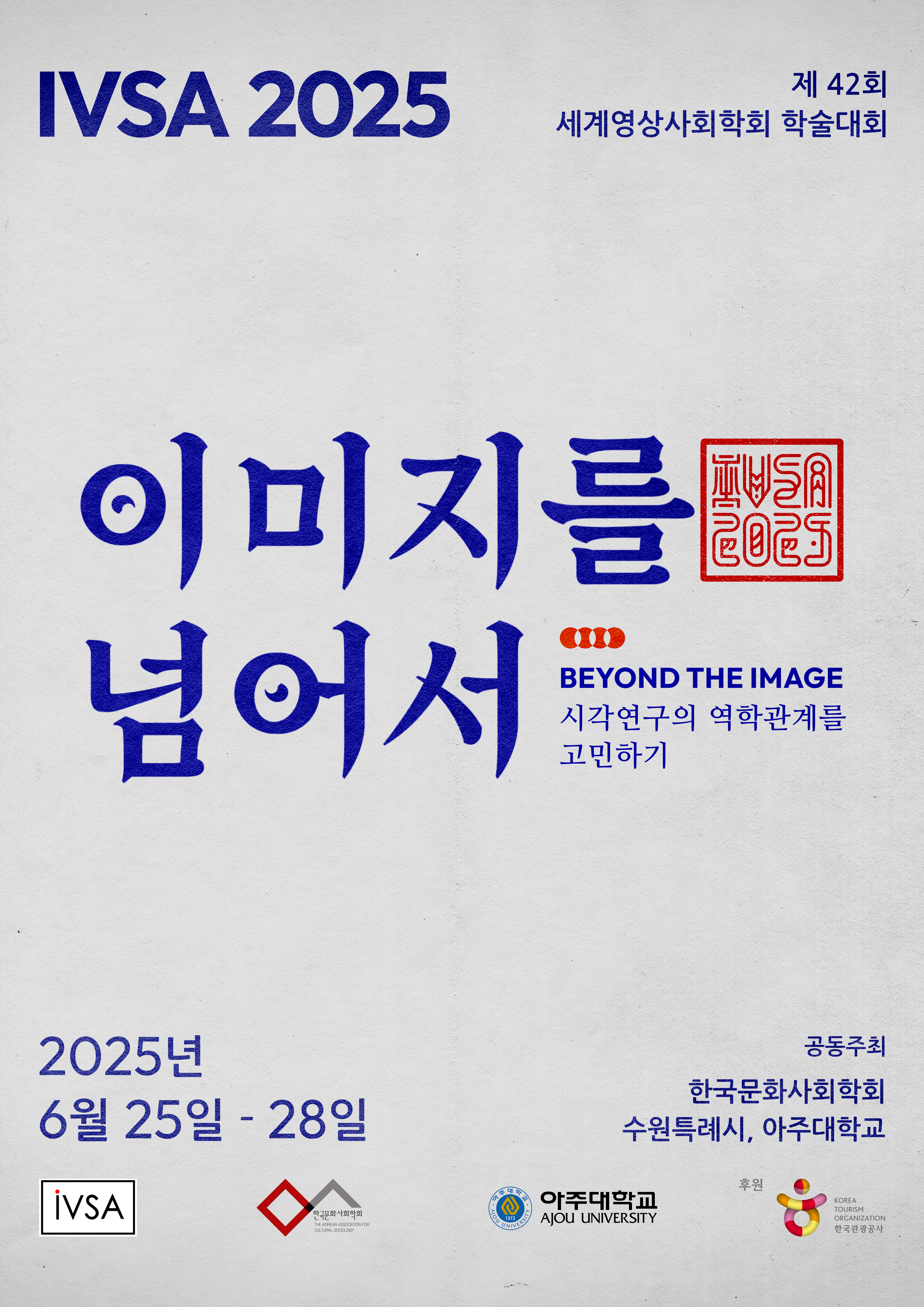 세계영상사회학대회(International Visual Sociology Association Conference)가 세계영상사회학회와 한국문화사회학회 공동 주최로 2025년 동아시아에서는 처음으로 아주대학교에서 개최됩니다.