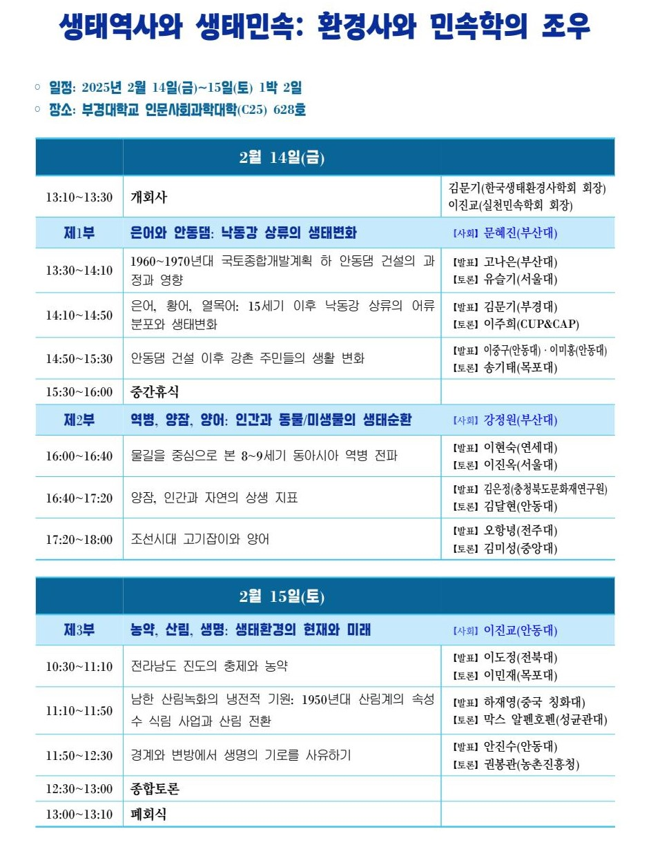 2025 한국생태환경사학회, 실천민속학회, 안동대학교 대학원 민속학과 BK21교육연구팀 연합학술대회