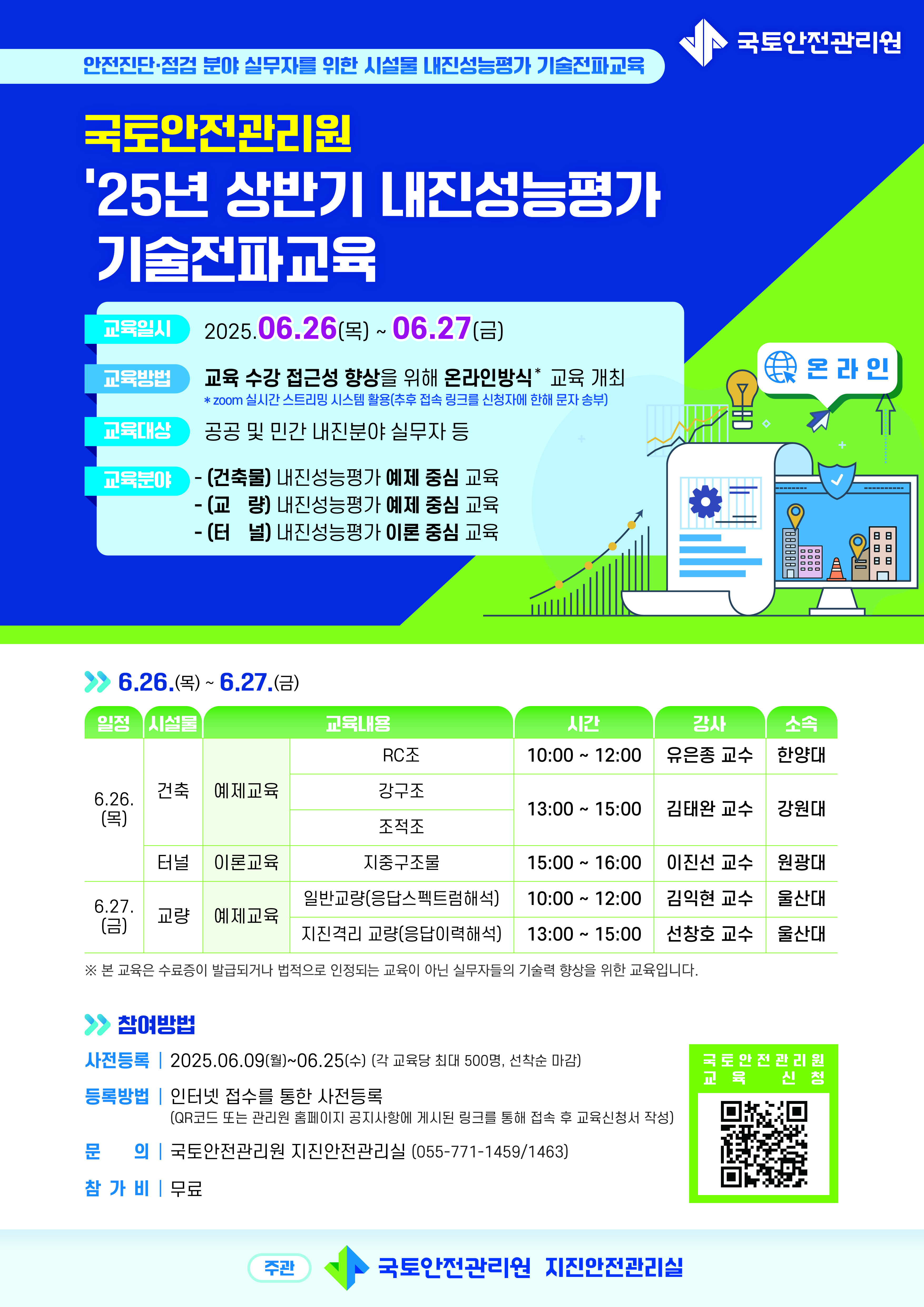 [국토안전관리원] '25년 상반기 내진성능평가 기술전파교육(온라인) 신청 안내
