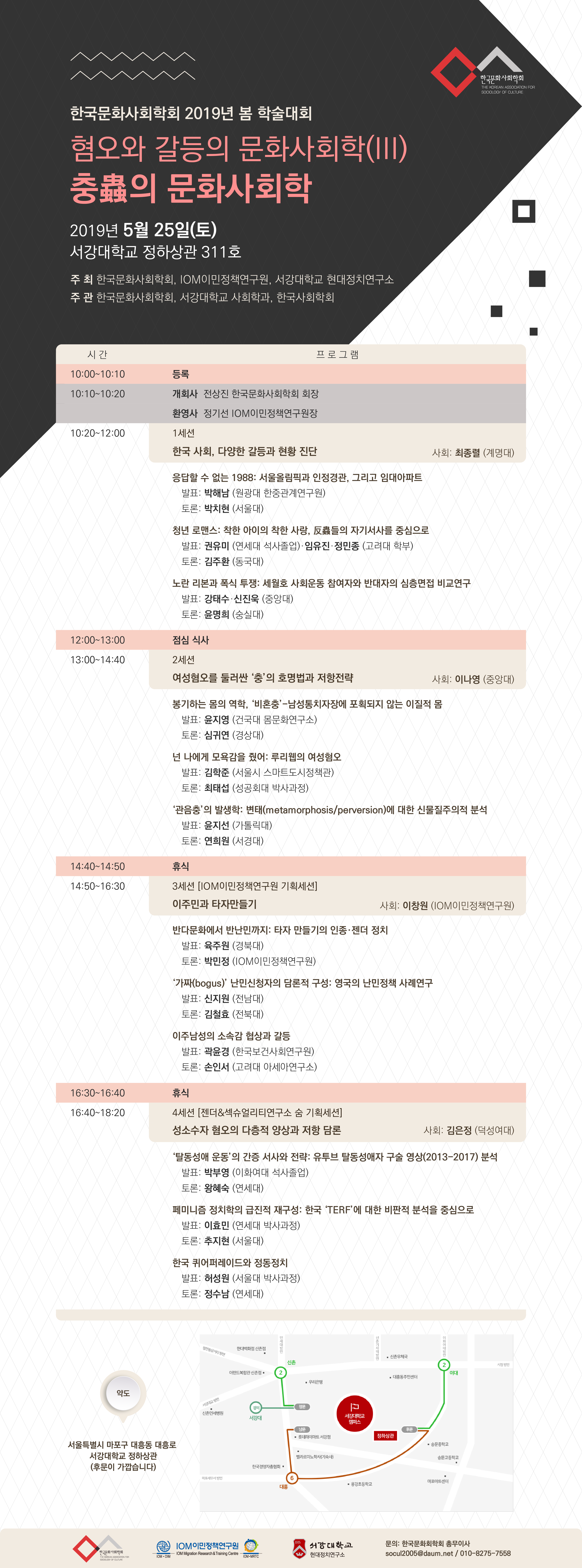한국문화사회학회 2019년 봄 학술대회(5월 25일, 서강대) 초대의 말씀 및 행사일정 안내