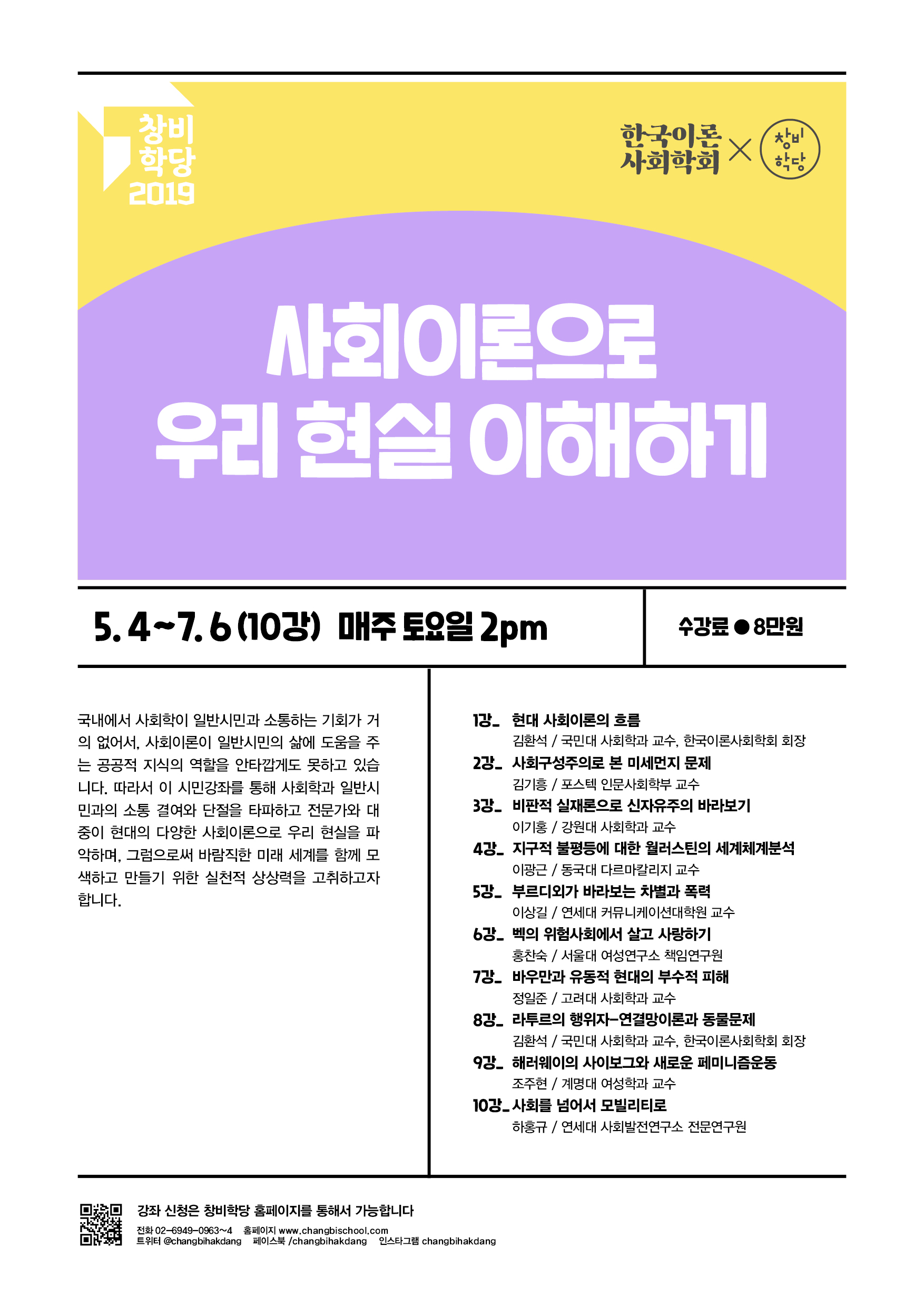 이 강좌의 실현을 위하여 올해 초부터 저는 이론사회학회 임원들과의 논의를 통해 계획안을 만들었고,