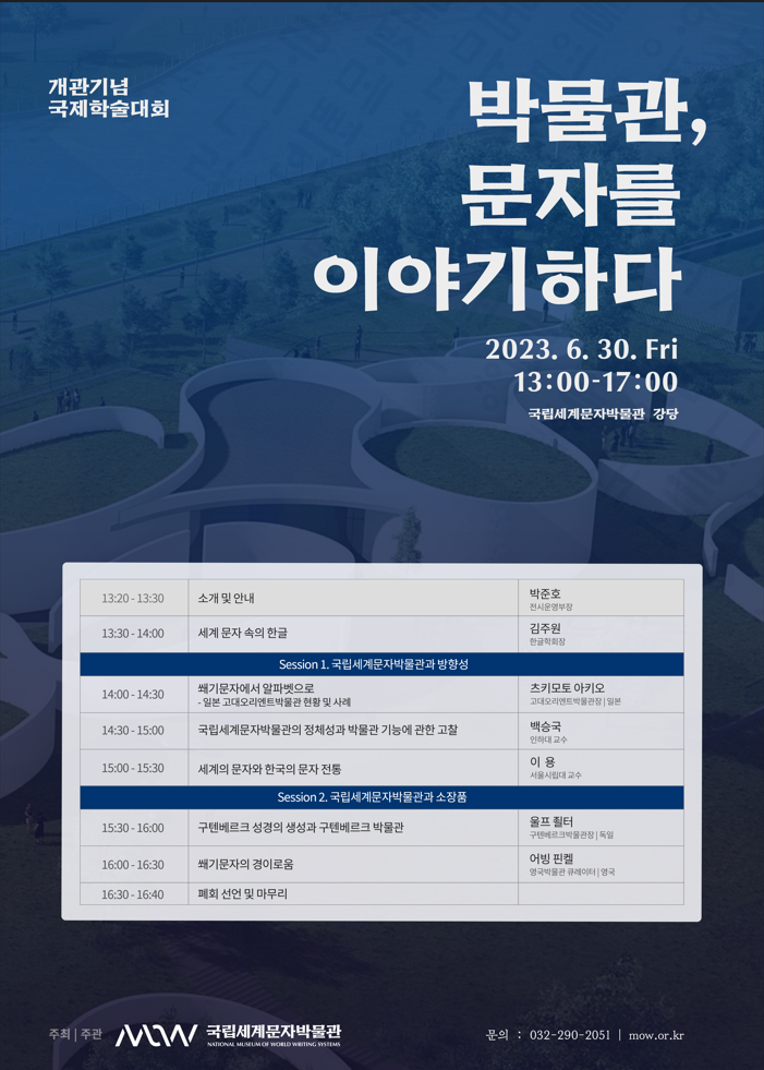 [국립세계문자박물관] 개관기념 국제학술대회 "박물관, 문자를 이야기하다" 개최(6/30)