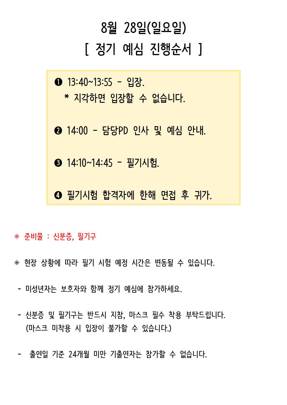 <2022828일 일요일 정기 예심 공지>