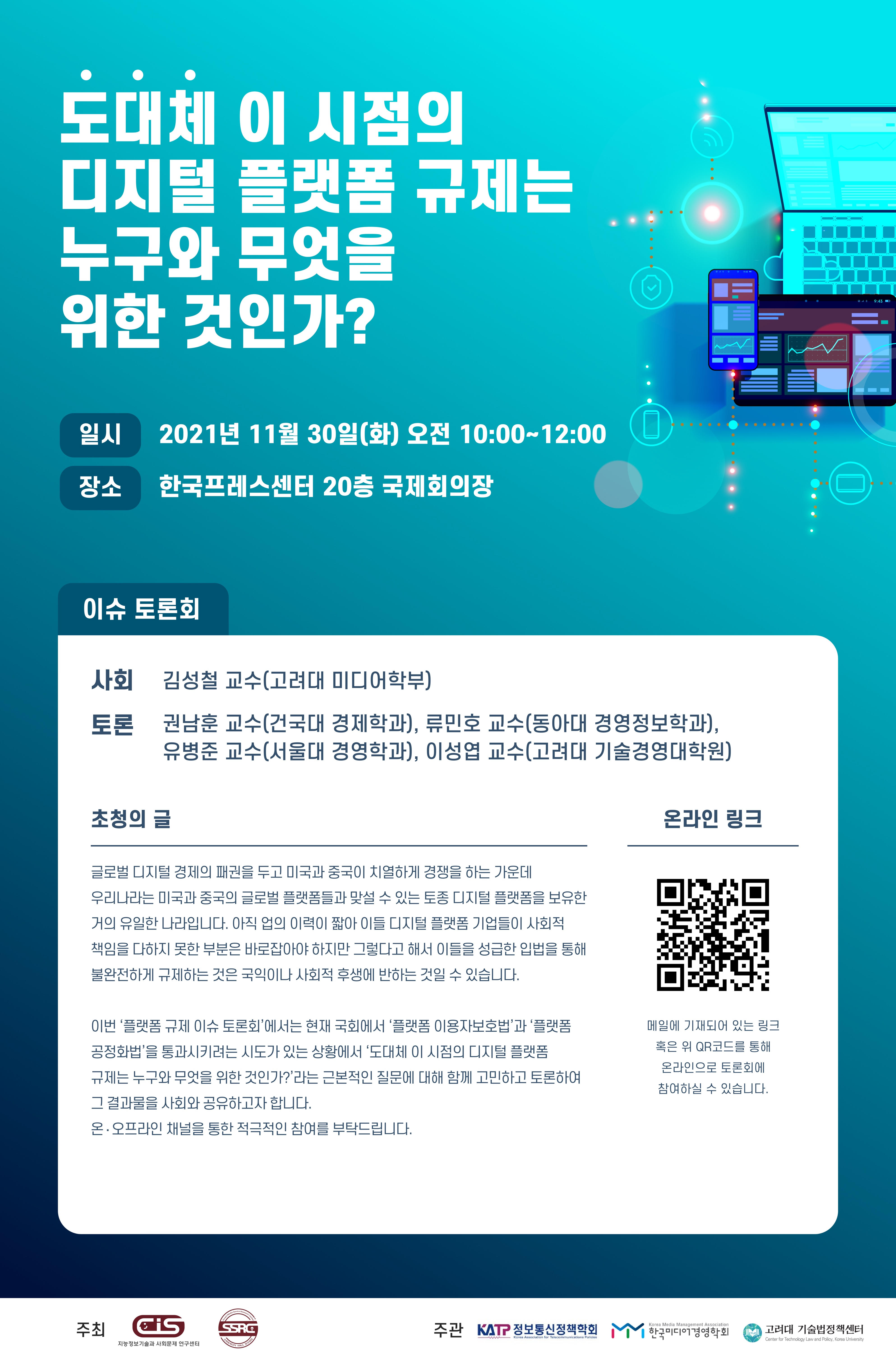 이슈토론회: 도대체 이 시점의 디지털 플랫폼 규제는 누구와 무엇을 위한 것인가?가 개최됩니다.