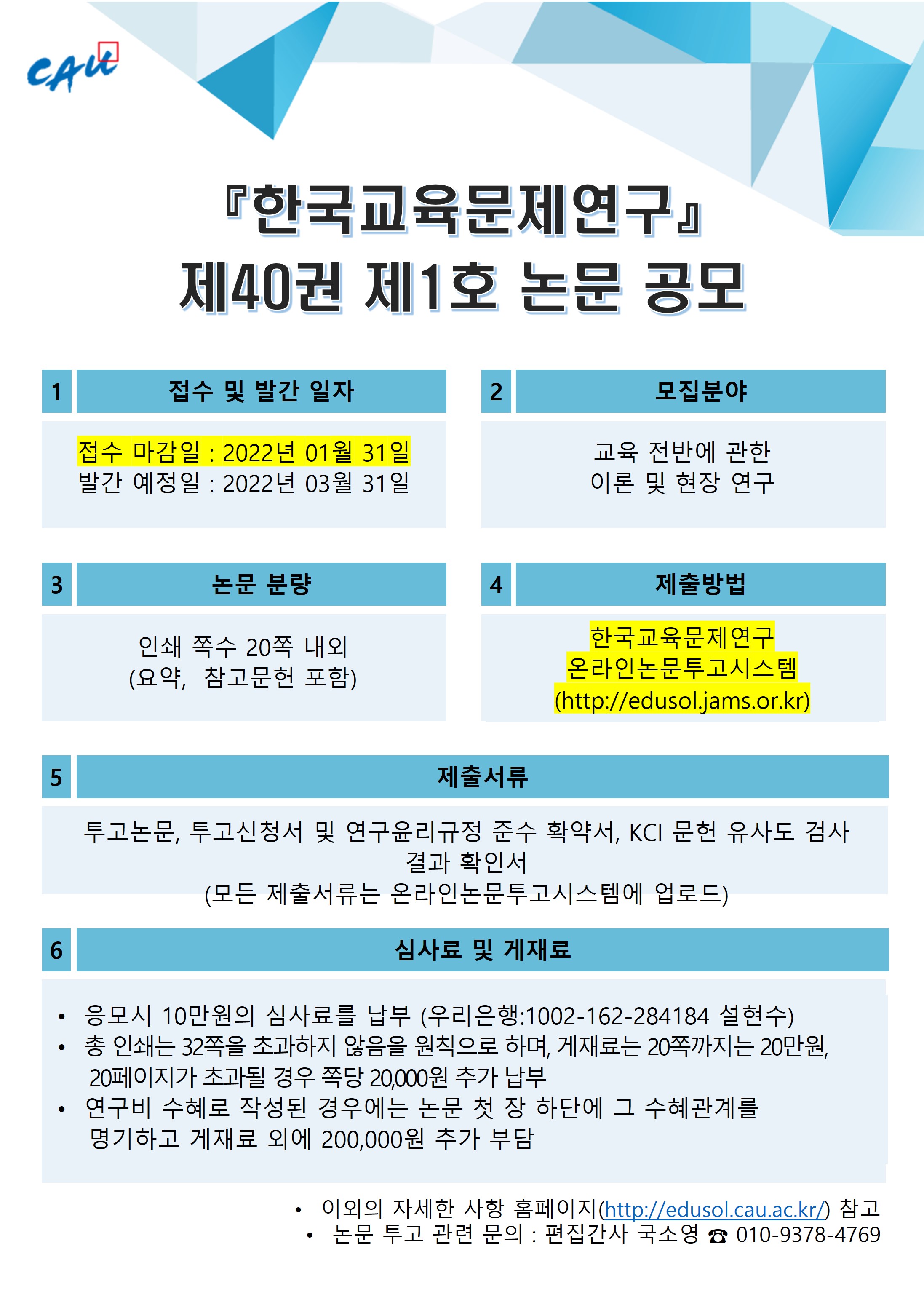 2022년도『한국교육문제연구』제40권 제1호 게재 논문 연장공모 안내