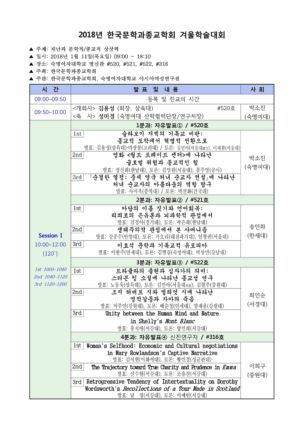■ 행사명_ 아시아여성연구원 공동주관 2018년 한국문학과종교학회 겨울학술대회