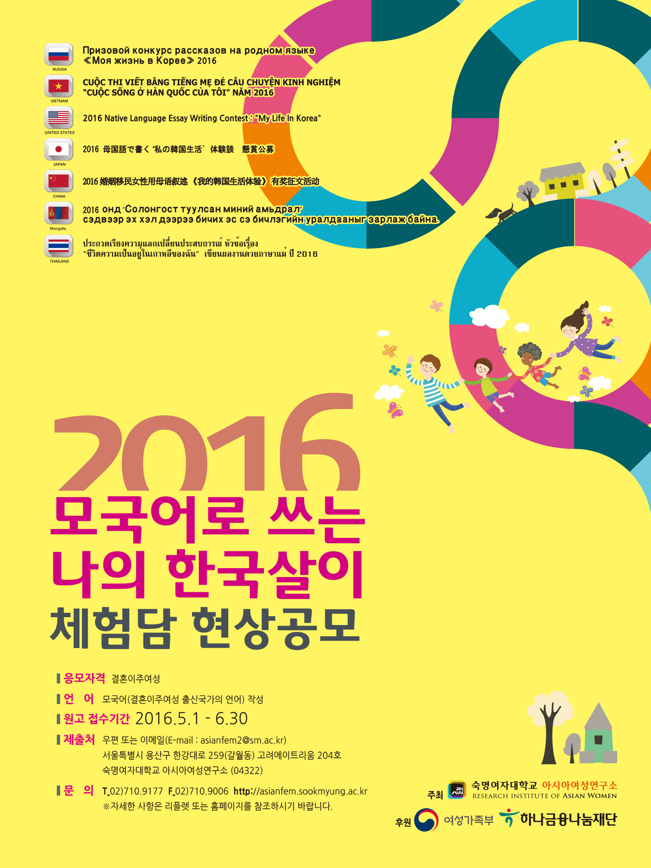 2016 모국어로 쓰는 '나의 한국살이' 체험담 현상공모전을 시행합니다.