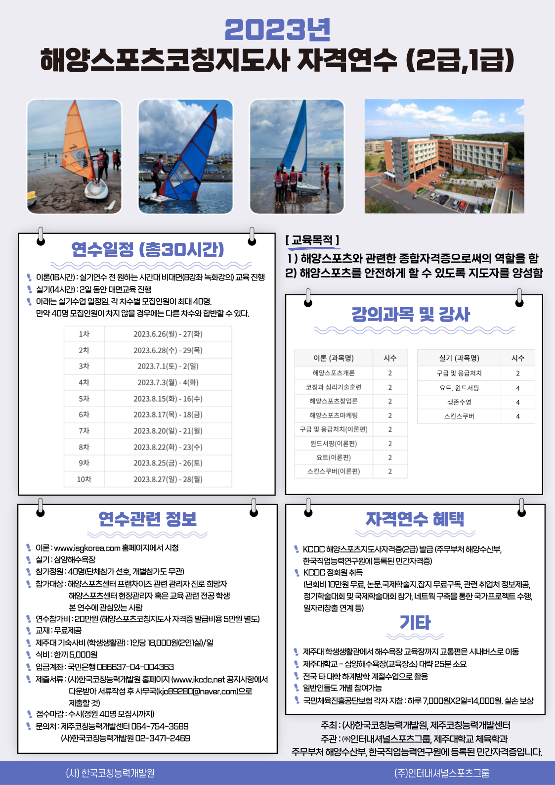 2023년 해양스포츠코칭지도사 자격연수 (2급.1급)