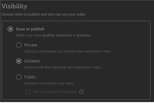 ★ 유튜브 업로드 시 링크를 알고 있는 사용자만 재생가능한 옵션(Unlisted)을 선택해 주세요.(아래 그림 참조)