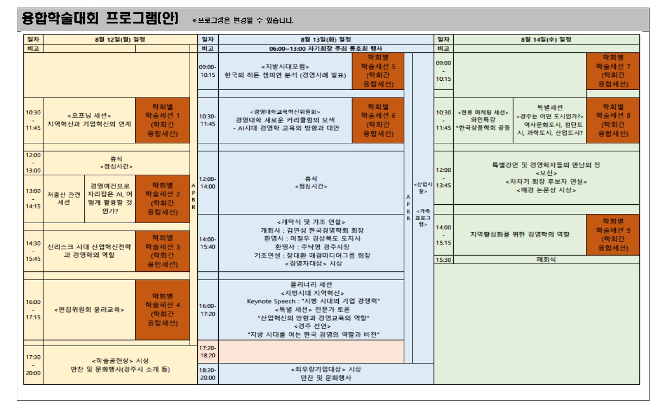 ※ 학술대회 세부일정(안)은 첨부파일을 참조하시기 바람.