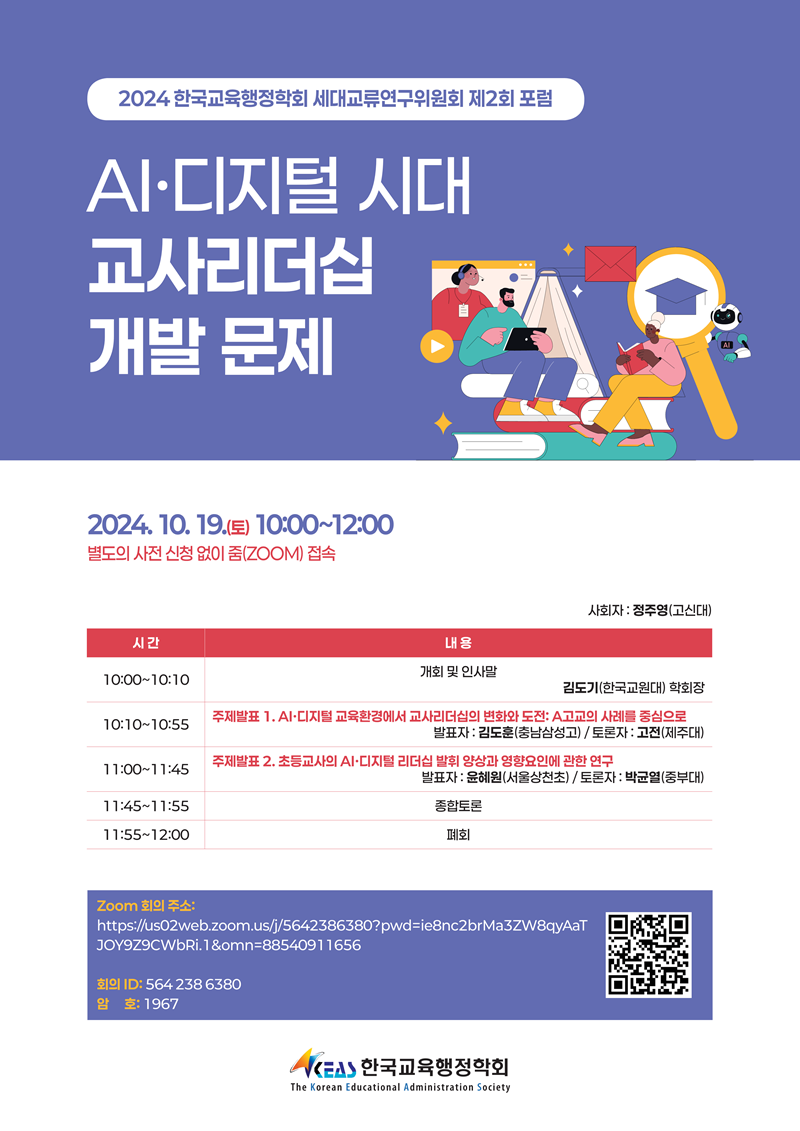 <2024년 한국교육행정학회 세대교류연구위원회 비대면 줌(ZOOM) 포럼>