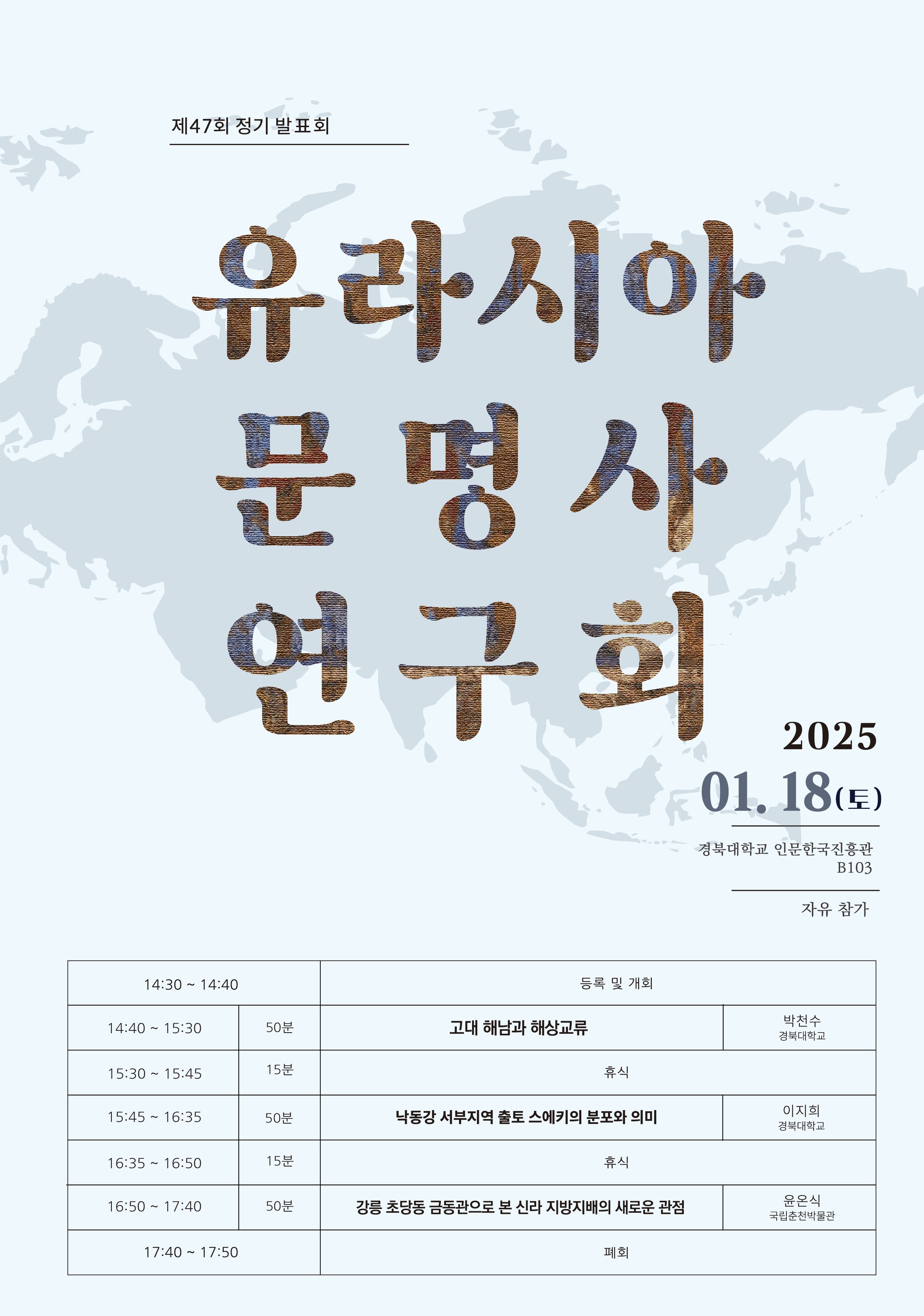 2024년 1월 18일 토요일, 유라시아문명사연구회 제47회 정기발표회가 진행될 예정입니다.