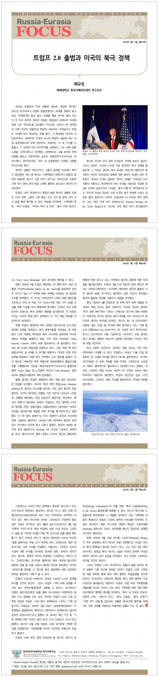 제824호 트럼프 2.0 출범과 미국의 북극 정책